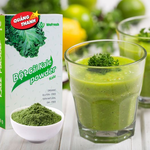Được làm 100% từ lá cải kale tươi, trải qua quy trình sấy lạnh và nghiền thành bột mịn. Cải kale được biết đến là một loại rau giàu dinh dưỡng, với hàm lượng cao vitamin A, K, C, canxi, sắt và chất chống oxy hóa. Bột cải kale sấy lạnh giúp tăng cường sức khỏe xương khớp, cải thiện hệ miễn dịch và bảo vệ tim mạch.